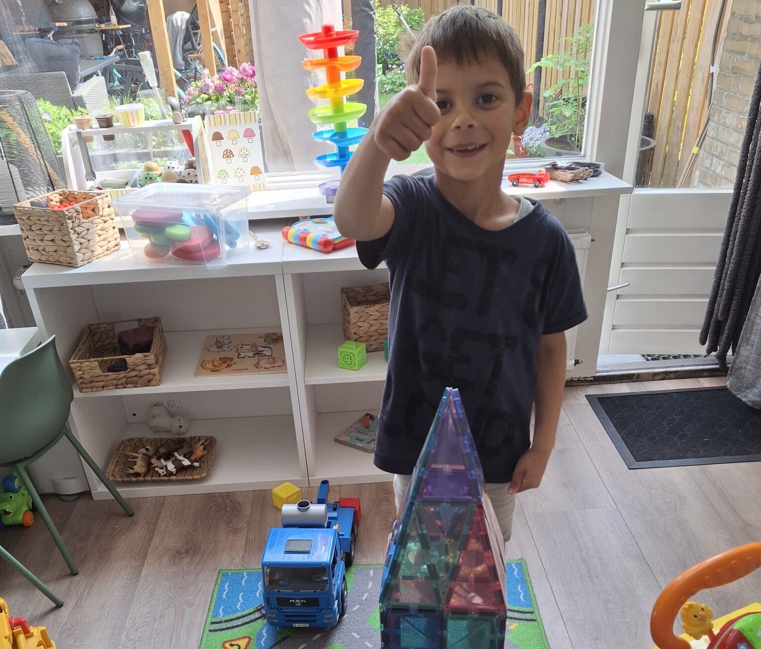 Wij wonen in een kindvriendelijke buurt met volop wandel en speelmogelijkheden. Ik vind het ontzettend leuk om met de kinderen te gaan lezen, knutselen, lekker te spelen in huis of in de tuin. Daarnaast beschik ik over een bakfiets, dus ook daarmee kunnen we er op uit.